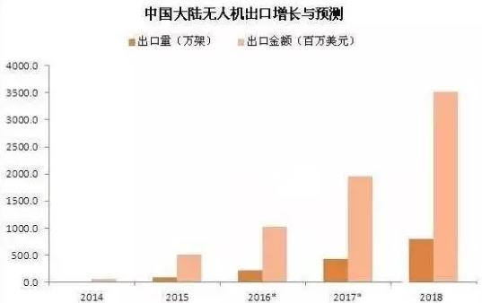 據(jù)國家海關數(shù)據(jù)統(tǒng)計,2015年中國大陸出口無人機89.1萬架,同比增長427.2%;出口金額5.15億美元(約合32.7億人民幣),同比增長730.6%。主要出口地區(qū)依次是香港、北美和歐盟,平均出口價折合人民幣約3670元。其中,出口香港的40%又轉(zhuǎn)銷到北美和歐盟。2015年中國大陸進口無人機14.5萬架,同比增長1350%;進口金額1.1億美元,同比增長83.3%。平均進口價折合人民幣約4817元。目前中國大約有400個無人機制造商,是全球70%的無人機需求市場的供貨商。