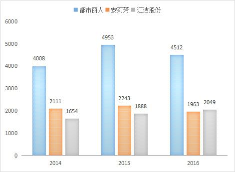 考慮到使用萊卡材料內(nèi)衣企業(yè)主要是中高端企業(yè),企業(yè)占市場(chǎng)份額較大,數(shù)據(jù)可獲取等因素,本部分主要針對(duì)中高端內(nèi)衣企業(yè)安莉芳集團(tuán)(以下簡(jiǎn)稱(chēng)為:安莉芳)、深圳匯潔集團(tuán)股份有限公司(以下簡(jiǎn)稱(chēng)為:匯潔股份)、大眾性企業(yè)廣東都市麗人實(shí)業(yè)有限公司(以下簡(jiǎn)稱(chēng):都市麗人)進(jìn)行分析。