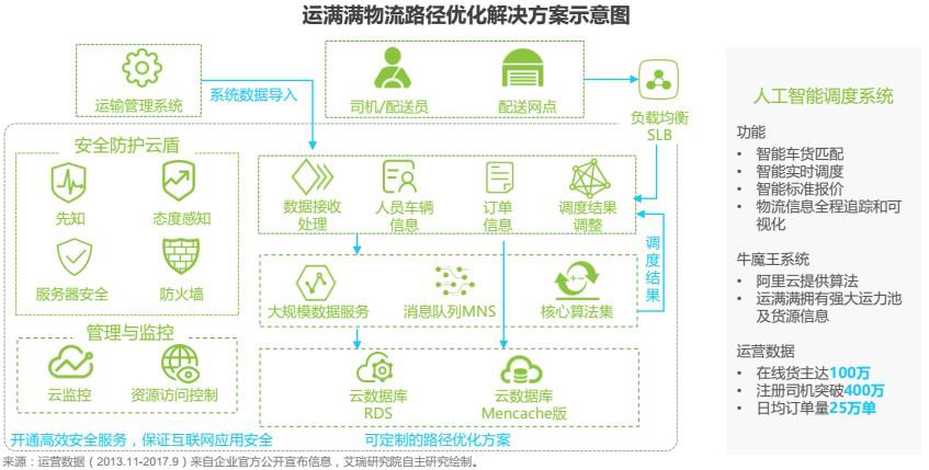 2016年底,運滿滿攜手阿里云,發(fā)布了“牛魔王”人工智能調(diào)度系統(tǒng),結(jié)合運滿滿的數(shù)據(jù)和用戶場景、以及阿里云的算法團隊,共同推動干線配貨人工調(diào)度朝著智能化方向推進?!芭D酢毕到y(tǒng)是基于云計算、大數(shù)據(jù)、移動互聯(lián)網(wǎng)和人工智能技術的公路物流領域高新技術綜合應用的典型代表,可以實現(xiàn)服務車主與貨主的智能車貨匹配、智能實時調(diào)度、智能標準報價及對物流信息全程追蹤和可視化,顯著提升公路干線物流貨源、車輛、路線、價格匹配速度、精準度和運輸組織效率。