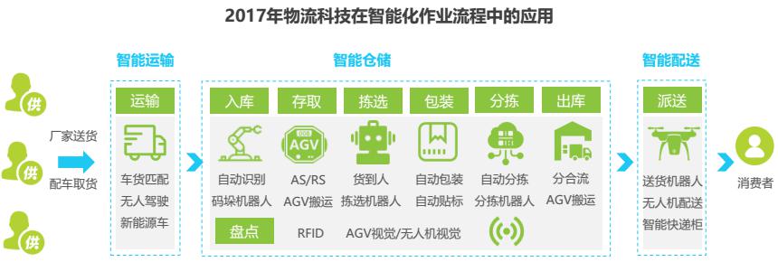 “互聯(lián)網(wǎng)+高效物流”已被列入“互聯(lián)網(wǎng)行動計劃當中”。大數(shù)據(jù)、云計算、物聯(lián)網(wǎng)、人工智能技術的成熟發(fā)展,可以對物流各環(huán)節(jié)進行信息化、高效率的管理,提高運輸、配送效率、減少損耗,并可指導生產(chǎn)制造,為顧客提供更好的服務體驗,推動物流供應鏈智慧化升級。