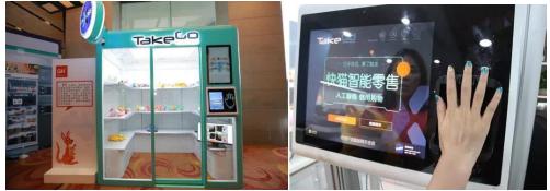 Take go是深藍科技推出的無人零售技術,包括快貓 TakeGo 無人店、TakeGo 無人立柜、TakeGo無人臥柜等。以TakeGo無人立柜為例,占地面積不到10平米,商品包括包裝食品、飲料、玩具等,消費者首次進店需要將手掌放在生物識別讀寫器上完成身份認證,進行注冊并與支付寶等支付方式綁定;之后每次進店只需刷手;在選購過程中由卷積神經網絡技術完成商品識別;離店時會收到對應的賬單,并被系統(tǒng)自動扣款。