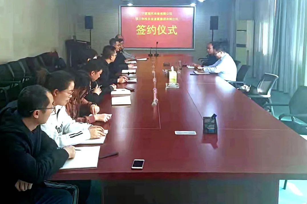 為進一步強化國企合作,增強業(yè)務拓展、優(yōu)勢互補,切實提高合作質(zhì)效,匯聚推進合力,近日,寧夏現(xiàn)代農(nóng)業(yè)有限公司(以下簡稱“現(xiàn)代農(nóng)業(yè)公司”)與銀川創(chuàng)投農(nóng)業(yè)發(fā)展集團有限公司(以下簡稱“創(chuàng)投集團”)舉行了合作協(xié)議簽約儀式。寧夏現(xiàn)代農(nóng)業(yè)有限公司總經(jīng)理張亞東,銀川創(chuàng)投農(nóng)業(yè)發(fā)展集團有限公司總經(jīng)理盛軍出席本次簽約儀式。